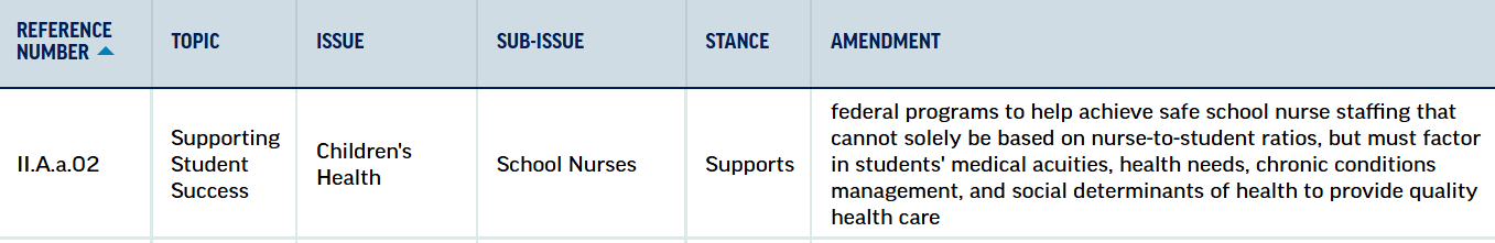 Also, by the way for those of you who have the National Education Association as your national-level union, the NEA Nurses in Schools Caucus had NEA update their legislative programs to reflect this a couple years ago. (see image)