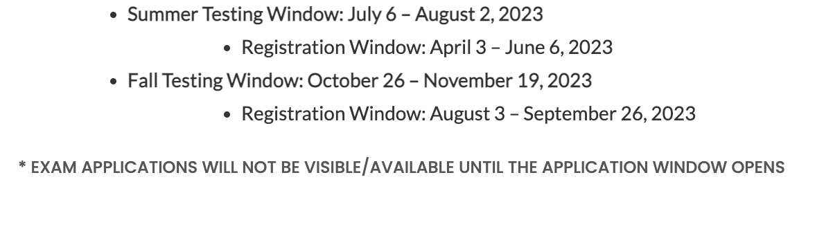 The exam will be available for the upcoming testing windows for Summer/Fall/2023: